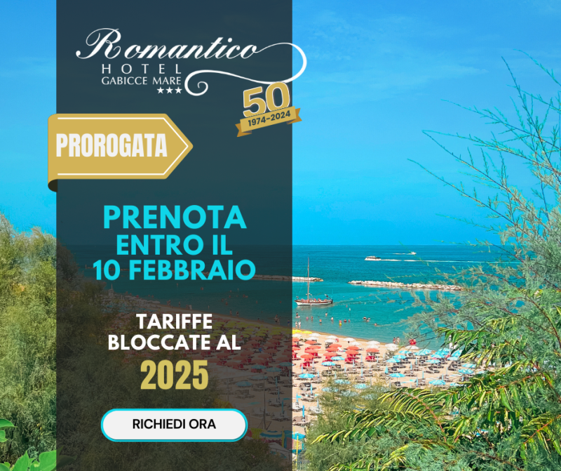 Benvenuti all'Hotel Romantico nel cuore di Gabicce Mare e a soli 50 mt dalla spiaggia.